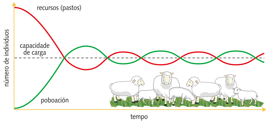 Cando unha poboación alcanza o maior número de individuos que o medio pode soportar, é dicir, a súa capacidade de carga, mantense en equilibrio.