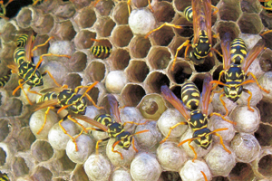 Sociais. Nelas establécese unha xerarquía e unha distribución de tarefas. Son típicas de insectos como as abellas ou as avespas.