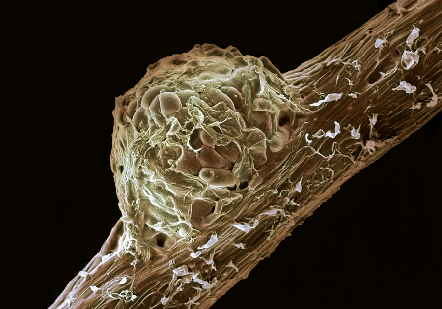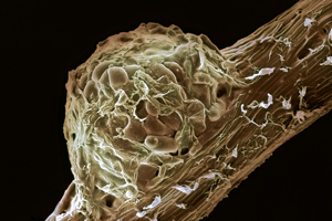 Certos fungos do chan conviven con raíces de plantas formando unha asociación mutualista chamada micorriza, que resulta moi beneficiosa.