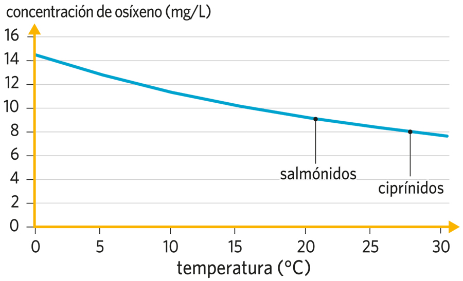 O aumento de temperatura condiciona a concentración de osíxeno e a existencia de salmónidos e ciprínidos.