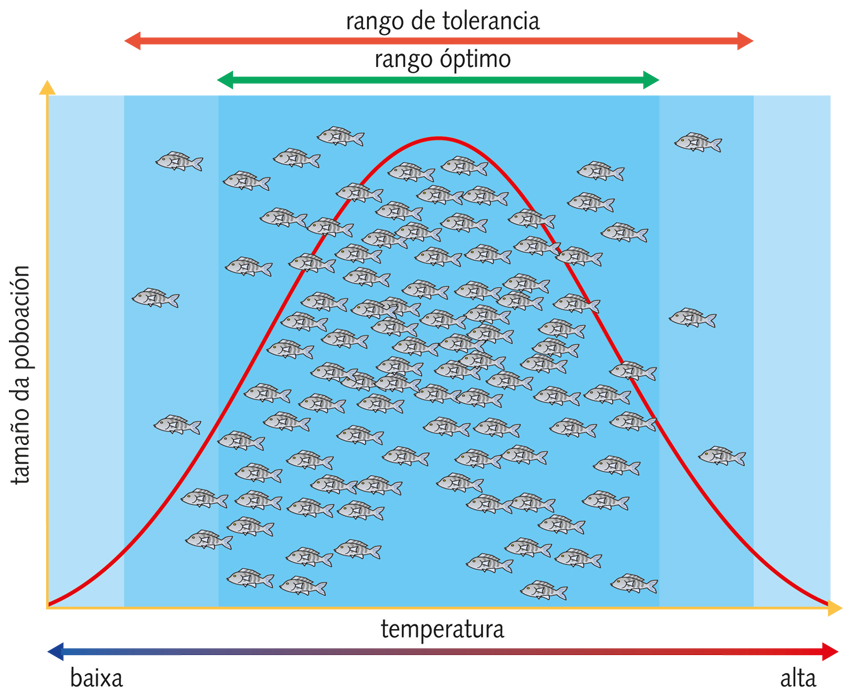 Todos os organismos son capaces de vivir dentro de certos límites de condicións ambientais, chamado rango de tolerancia, e teñen un máximo desenvolvemento nuns valores concretos, que se denominan rango ou nivel óptimo. O rango de tolerancia e o nivel óptimo difiren para cada especie e para cada un dos factores abióticos.